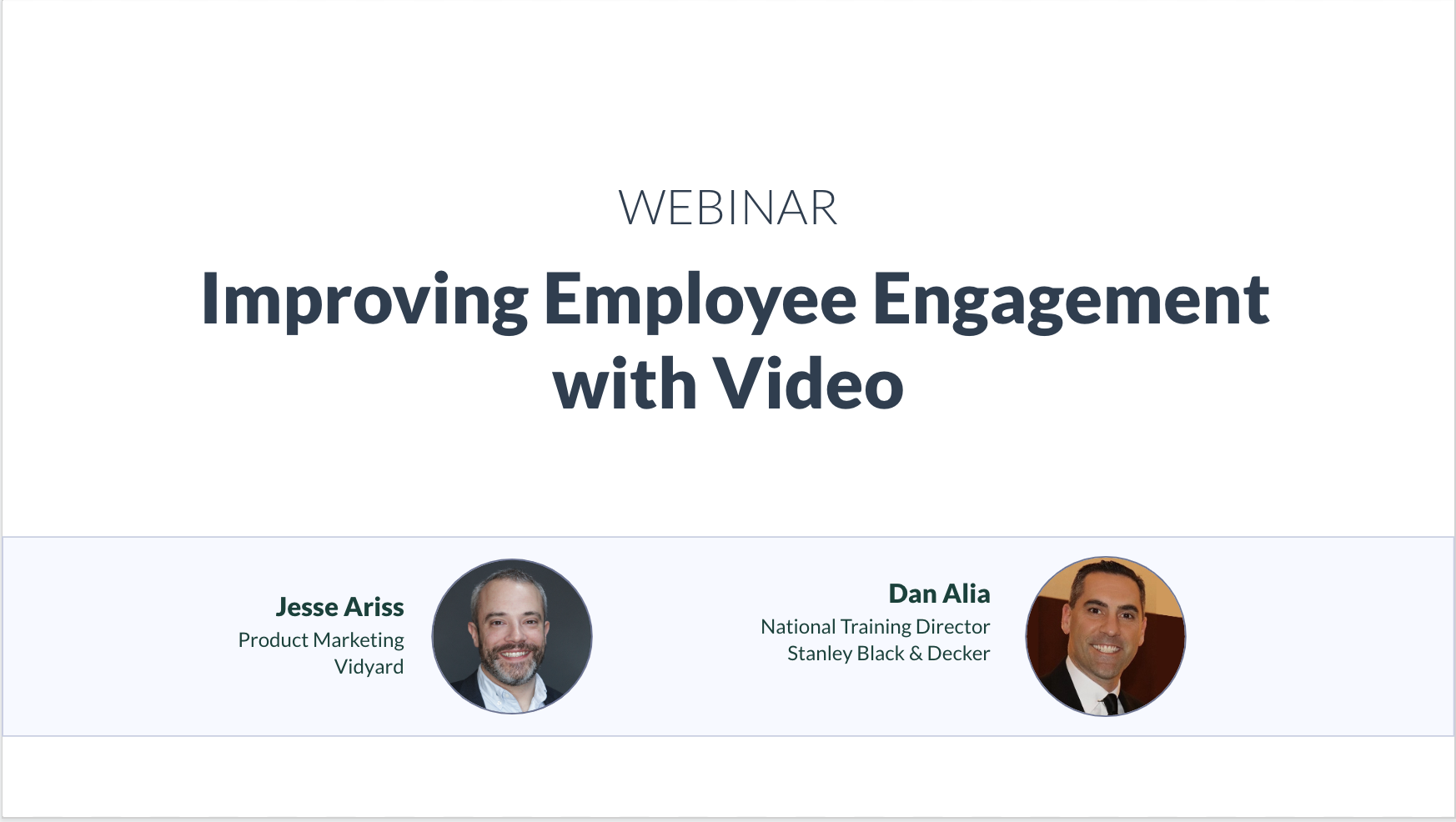 Learn why video is pivotal to effective internal communication. You’ll hear firsthand from Stanley Black & Decker on how they developed their digital training program with video to increase employee engagement. You’ll also learn what types of video are most effective for boosting employee engagement, accelerating on-boarding, and transmitting secure communication.