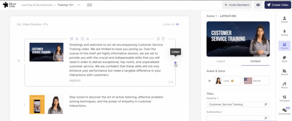 - Include multiple avatars in a single video to create scenarios and storylines.